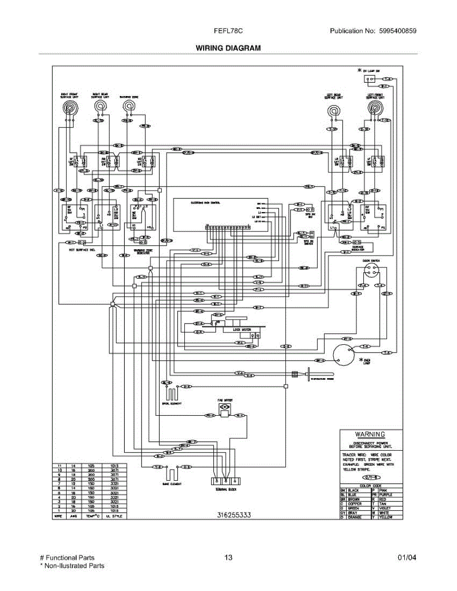 Parts for Frigidaire FEFL78CBA: 11 - Wiring Diagram Parts
