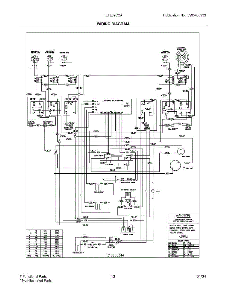 Parts for Frigidaire FEFL89CCA: 11 - Wiring Diagram Parts