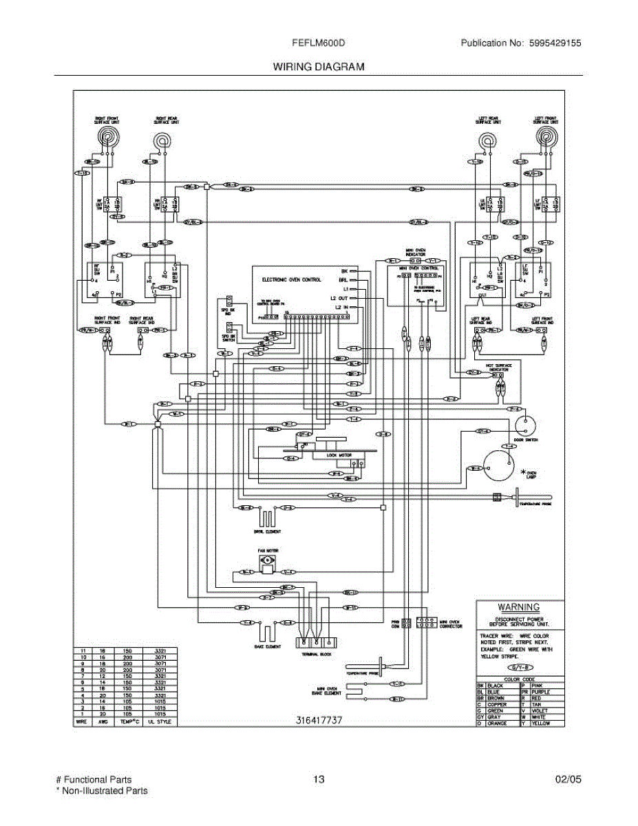 Parts for Frigidaire FEFLM600DQA: 11 - Wiring Diagram Parts