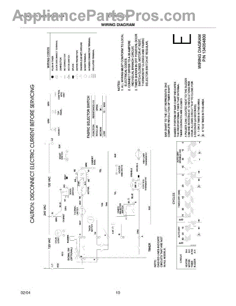 Parts for Frigidaire FERB5700DS0: 10 - Wiring Diagram Parts