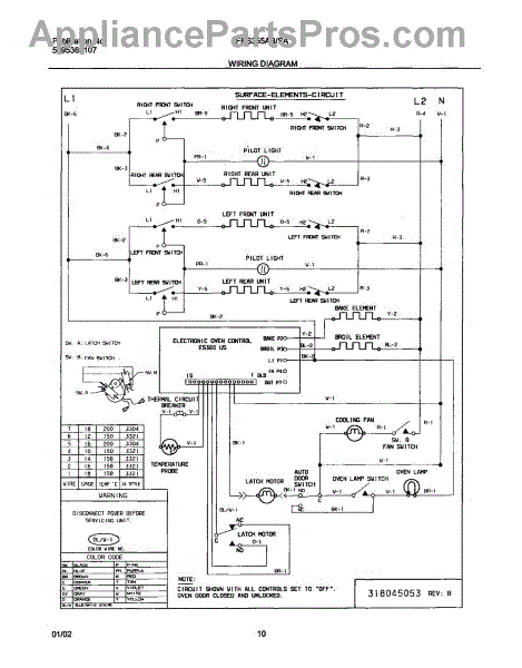 Parts for Frigidaire FES355ABA: 10 - Wiring Diagram Parts