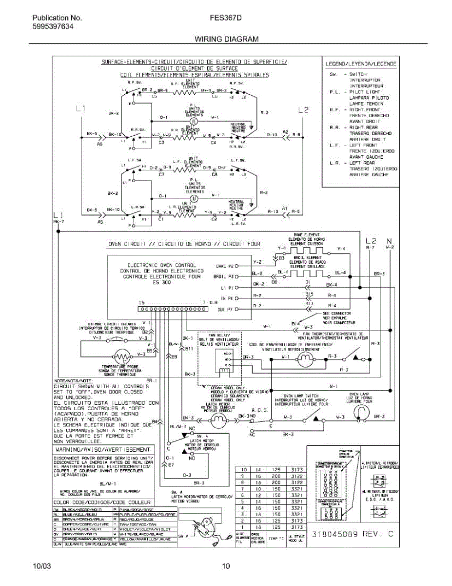 Parts for Frigidaire FES367DCB: 10 - Wiring Diagram Parts