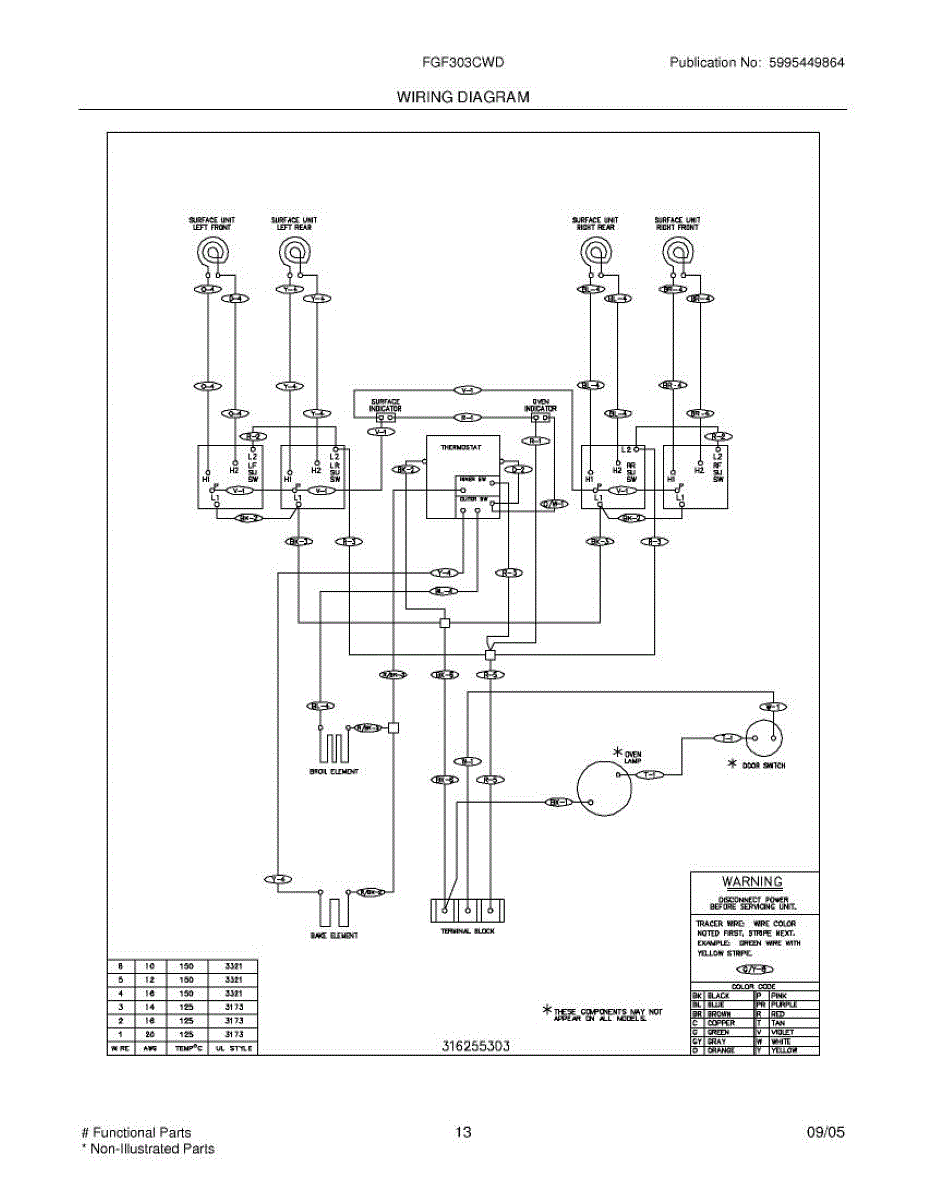 Parts for Frigidaire FGF303CWD: 13 - Wiring Diagram Parts