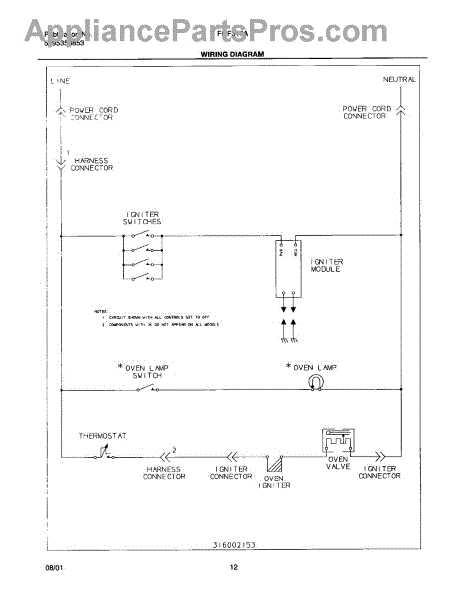 Parts for Frigidaire FGF316ASA: 12 - Wiring Diagram Parts
