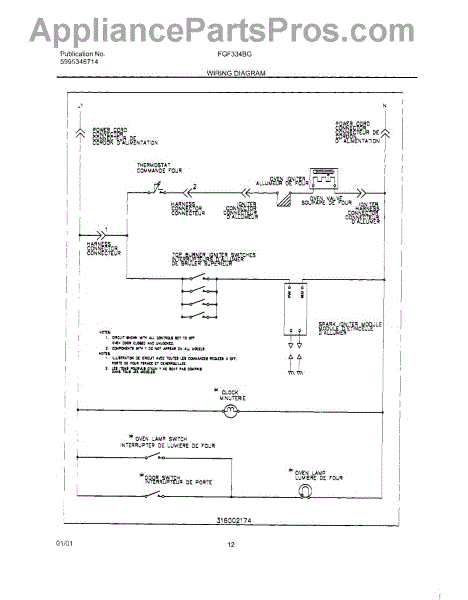 Parts for Frigidaire FGF334BGDJ: 12 - Wiring Diagram Parts