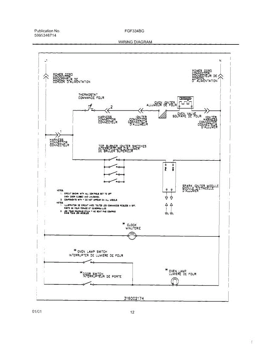 Parts for Frigidaire FGF334BGWJ: 12 - Wiring Diagram Parts