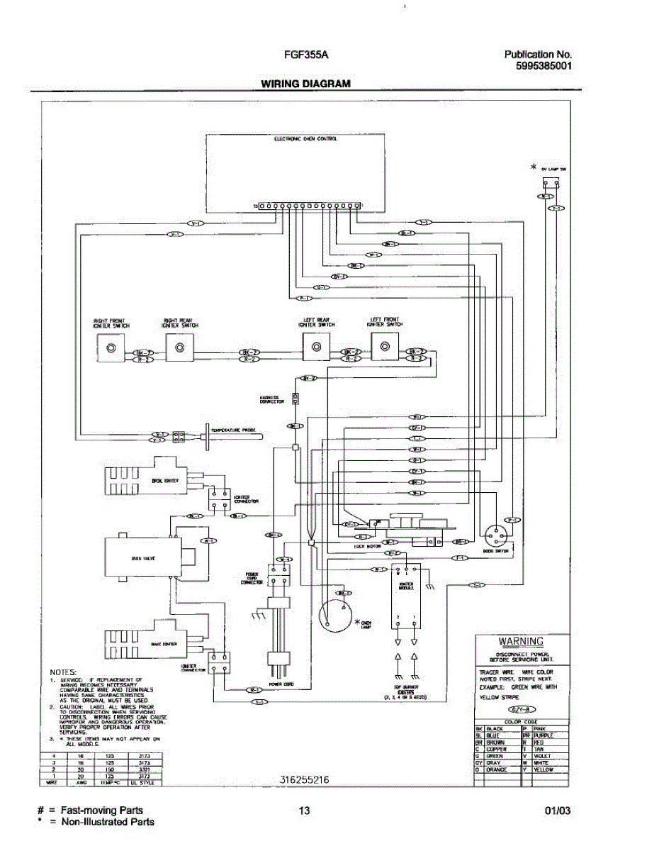 Parts for Frigidaire FGF355AUD: 13 - Wiring Diagram Parts