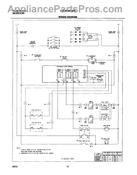 Parts for Frigidaire FGF355BXAWA: 12 - Wiring Diagram Parts