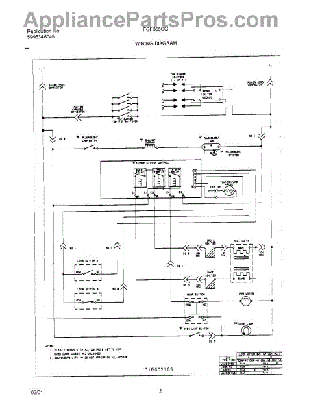 Parts for Frigidaire FGF355CGBF: 12 - Wiring Diagram Parts