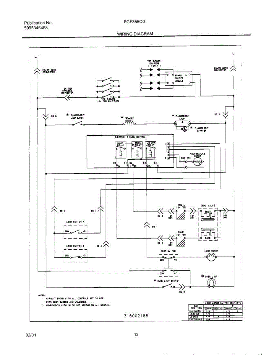 Parts for Frigidaire FGF355CGTG: 12 - Wiring Diagram Parts