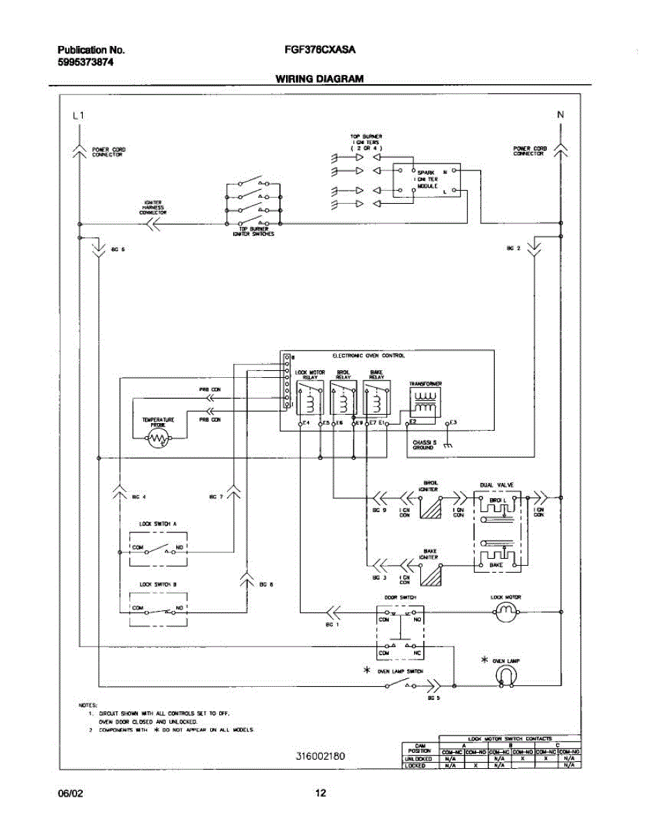 Parts for Frigidaire FGF376CXASA: 12 - Wiring Diagram Parts
