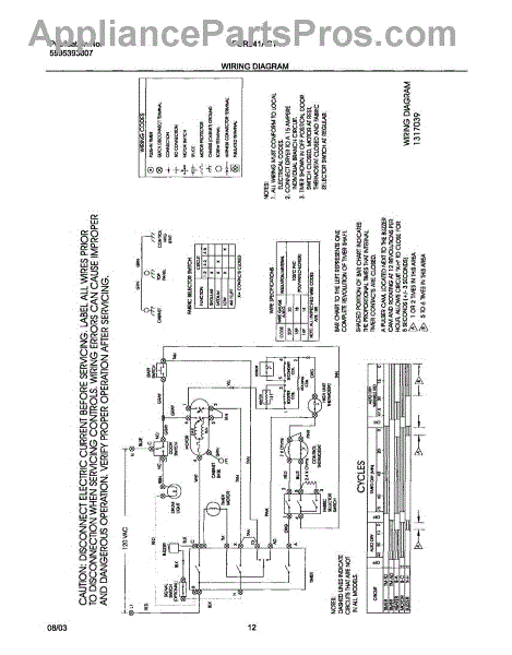 Parts for Frigidaire FGR341AC1: 12 - Wiring Diagram Parts