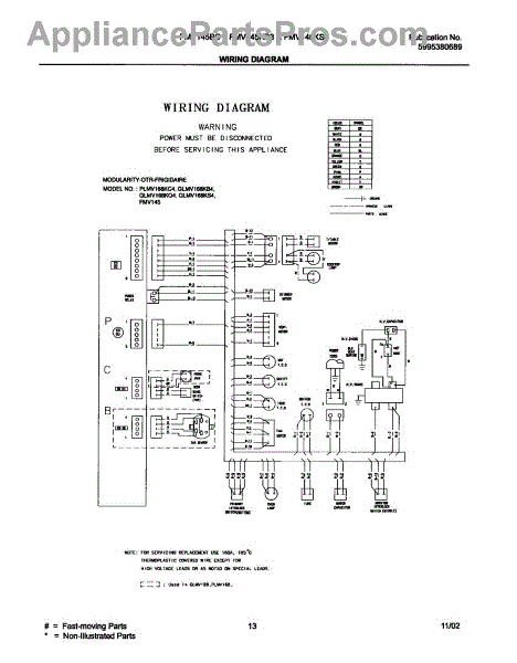 Parts for Frigidaire FMV145BC1: 13 - Wiring Diagram Parts