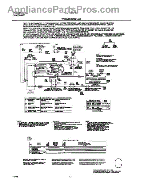 Parts for Frigidaire FSG446RHS4: 12 - Wiring Diagram Parts