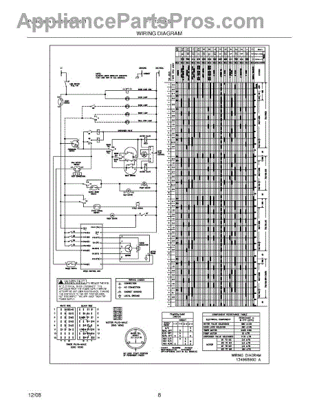 Parts for Frigidaire FTF1240FS1: 08 - Wiring Diagram Parts