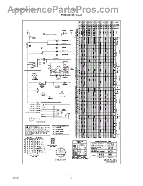 Parts for Frigidaire FTF1240FS2: 08 - Wiring Diagram Parts