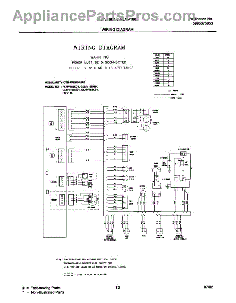 Parts for Frigidaire GLMV168KS4: 13 - Wiring Diagram Parts