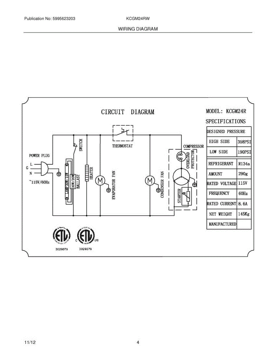 Parts for Frigidaire KCGM24RW: 04 - Wiring Diagram Parts