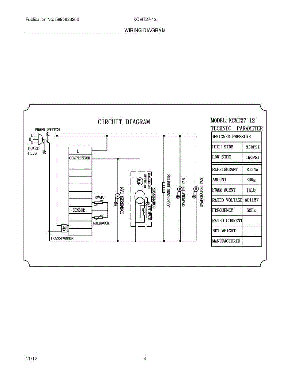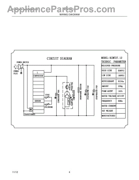 Parts for Frigidaire KCMT27-12: 04 - Wiring Diagram Parts