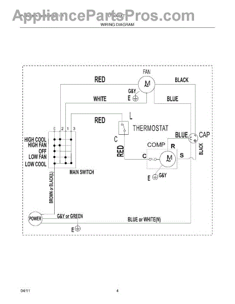 Parts for Frigidaire LRA050XT725: 04 - Wiring Diagram Parts