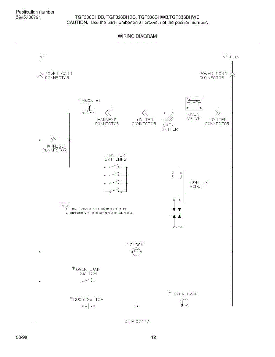 Parts for Frigidaire TGF336BHDB: 12 - Wiring Diagram Parts