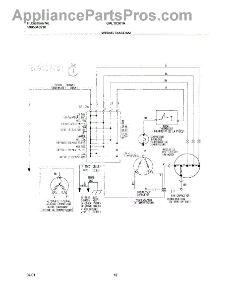 Parts for Gibson GAL103K1A1: 12 - Wiring Diagram Parts