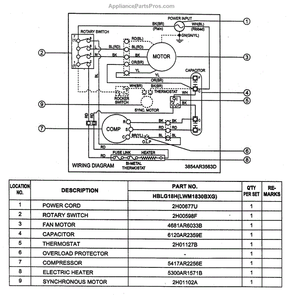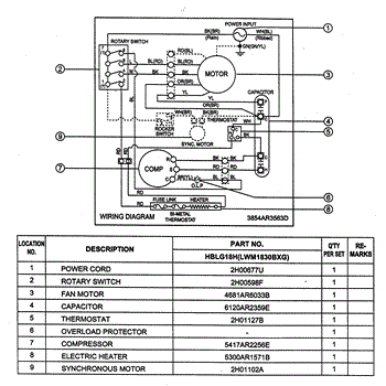 Parts for Lg HBLG18H: Wiring Diagram Parts