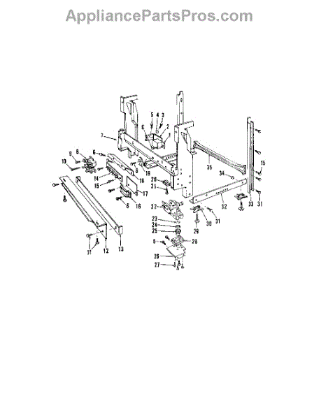 This factory screw secures appliance components to their mounting points. Replace missing, worn, or stripped hardware to restore a tight fit, proper alignment, and quieter operation across the affected assembly.
