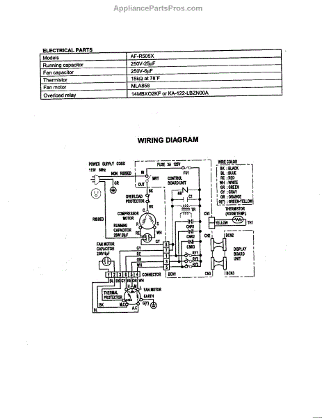 Parts for Sharp AF-R505X: Wiring Diagram Parts