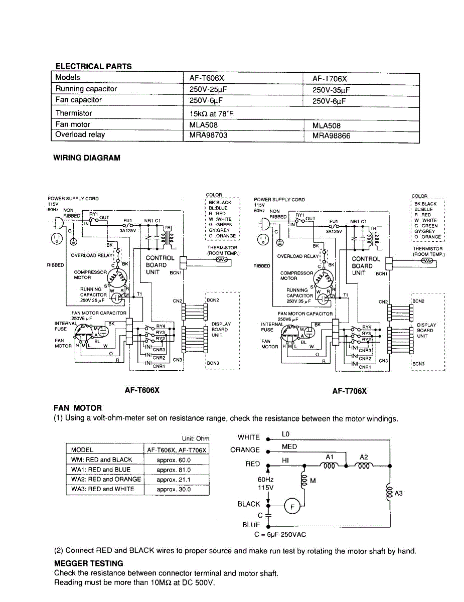 Parts for Sharp AF-T706X: Wiring Diagram Parts