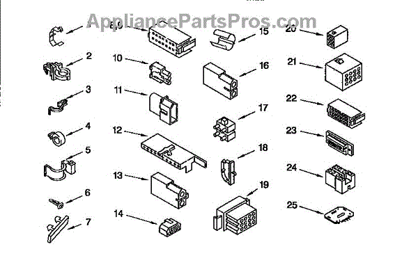 Wire connector block for washers. Transfers electrical connections between wiring harnesses. Replace if connector housing is cracked or melted.