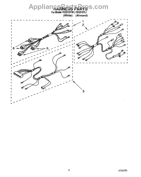 Parts for Roper FES310YW1: 06 - Wiring Harness Parts