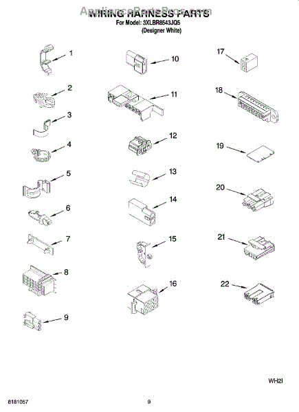Parts for Whirlpool 3XLBR8543JQ5: 06 - Wiring Harness Parts