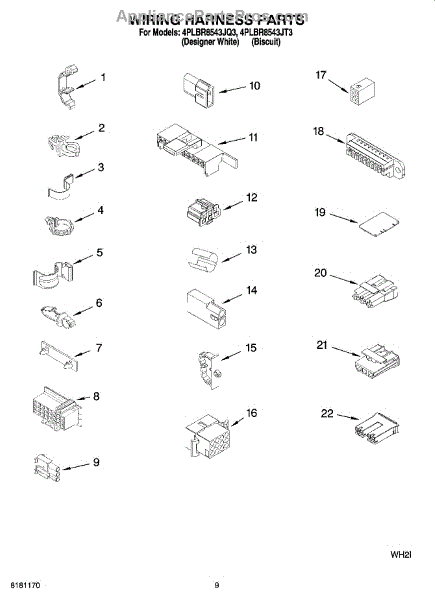 Parts for Whirlpool 4PLBR8543JT3: 06 - Wiring Harness Parts