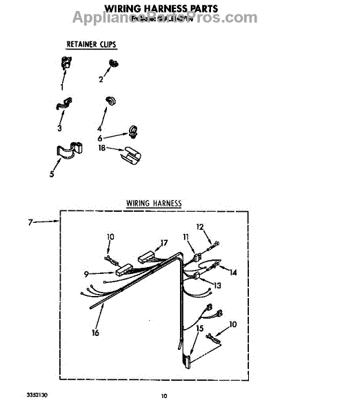 Parts for Whirlpool 6MAL5143VW0: Wiring Harness Parts