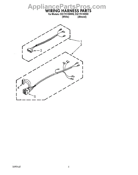 Parts for Whirlpool CG1751XWN0: 03 - Wiring Harness Parts