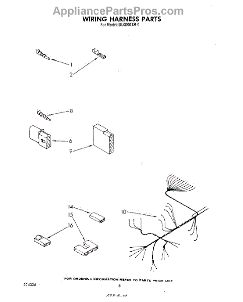 Parts for Whirlpool DU3000XR0: 06 - Wiring Harness Parts
