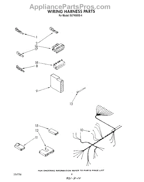 Parts for Whirlpool DU7400XS4: 06 - Wiring Harness Parts