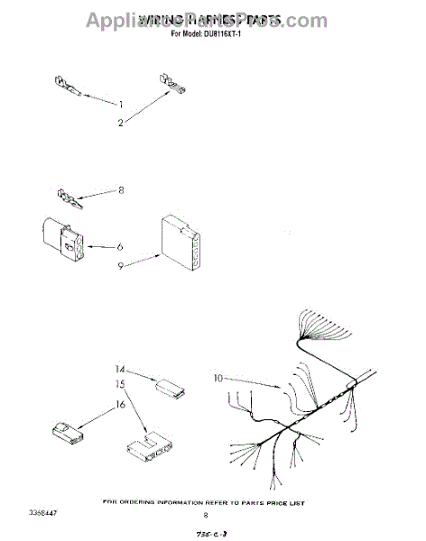 Parts for Whirlpool DU8116XT1: 06 - Wiring Harness Parts