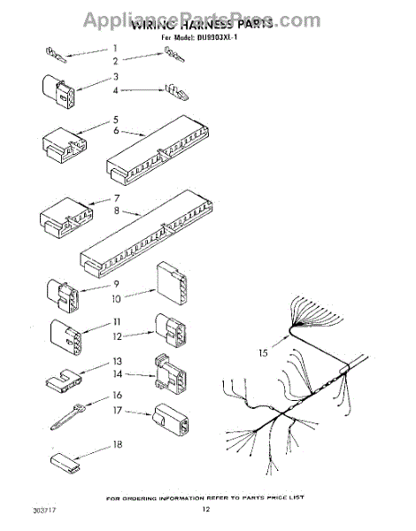Parts for Whirlpool DU9903XL1: 08 - Wiring Harness Parts