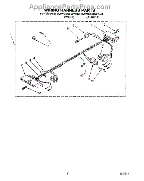 Parts for Kitchenaid KAWE560WWH3: 09 - Wiring Harness Parts