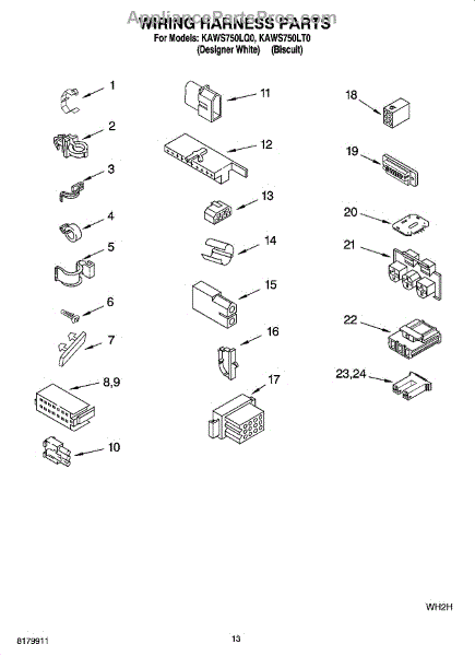 Parts for Kitchenaid KAWS750LQ0: 10 - Wiring Harness Parts