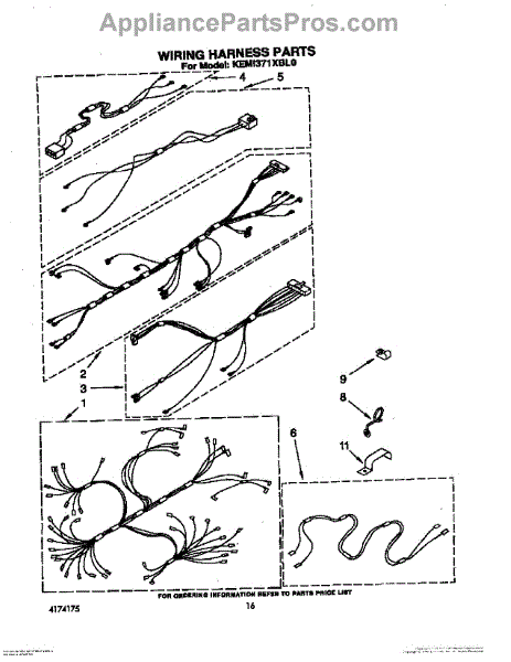 Parts for Kitchenaid KEMI371XBL0: 12 - Wiring Harness Parts