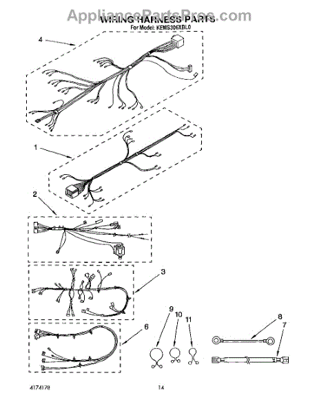Parts for Kitchenaid KEMS306XWH0: 10 - Wiring Harness Parts