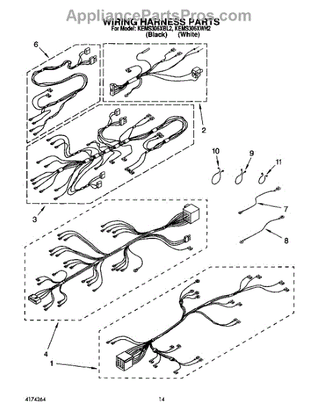 Parts for Kitchenaid KEMS306XWH2: 09 - Wiring Harness Parts