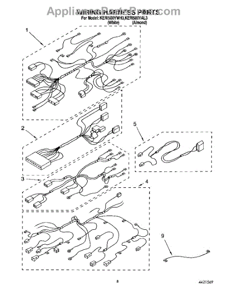 Parts for Kitchenaid KERI500YWH3: 06 - Wiring Harness Parts