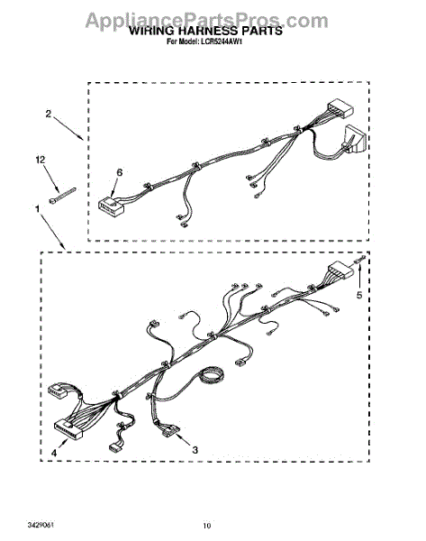 Parts for Whirlpool LCR5244AW1: 08 - Wiring Harness Parts