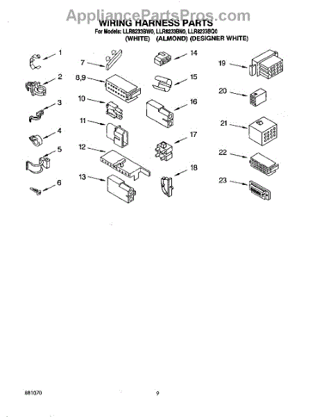 Parts for Whirlpool LLR8233BQ0: 07 - Wiring Harness Parts