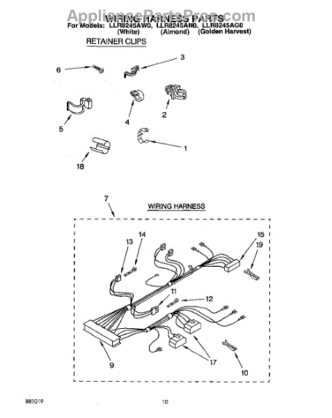 Parts for Whirlpool LLR8245AN0: 08 - Wiring Harness Parts