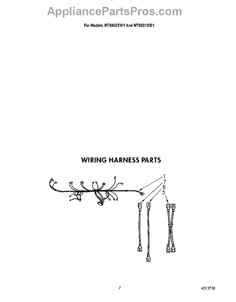 Parts for Whirlpool MT6900XW1: 07 - Wiring Harness Parts